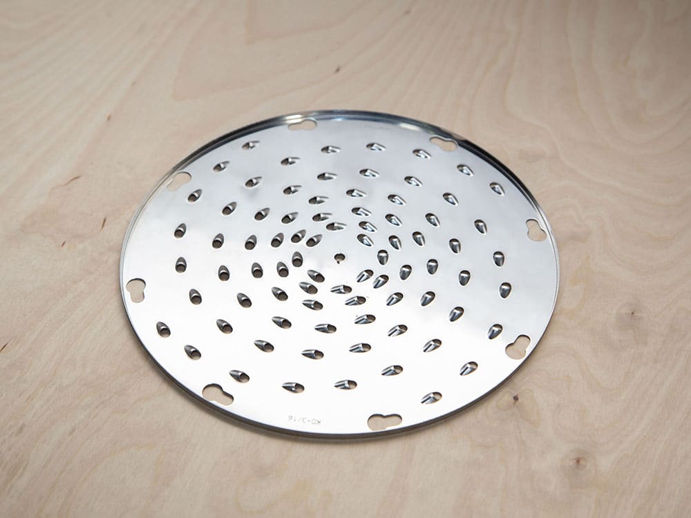 The almost smallest-sized scalloped shredder blade is made for our free-standing machines. Use this blade for very firm produce such as carrots, beets, and firm apples, especially if juicing individually. Leafy greens also perform well with this blade.